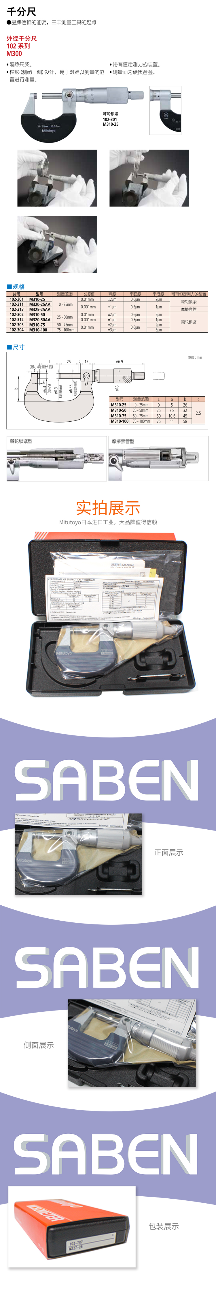 102系列機(jī)械式外徑千分尺M(jìn)300