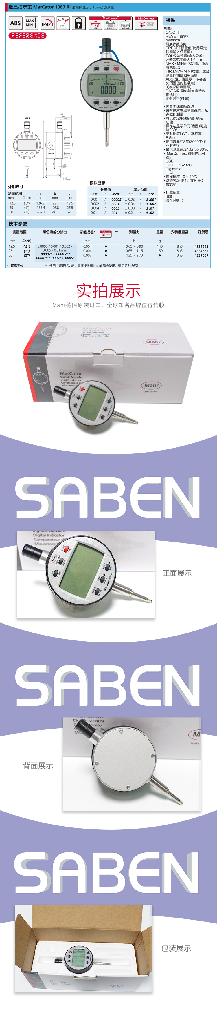IP42數(shù)顯指示表 內(nèi)置無線傳輸用于動態(tài)測量 MarCator 1087 Ri